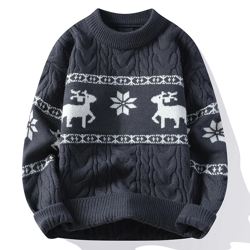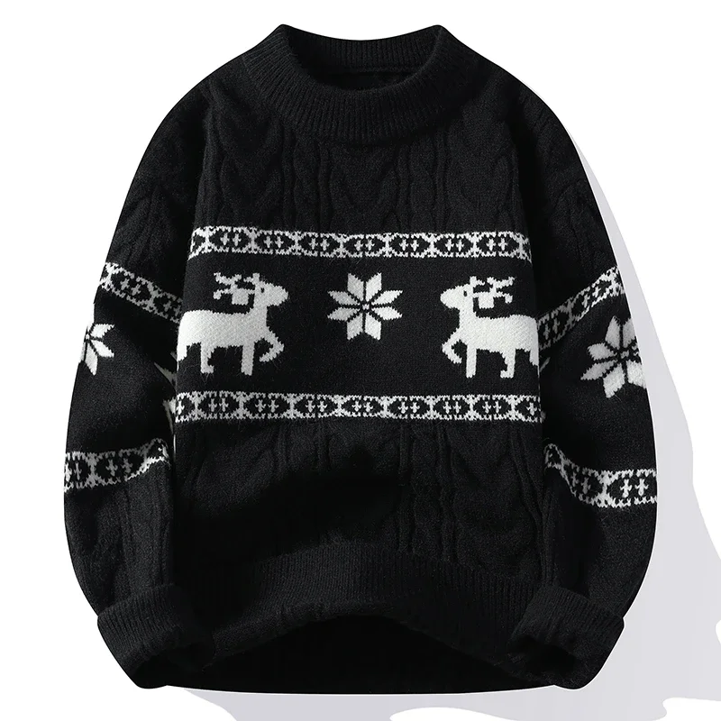 2024 New Fall Winter High End Luxury Cashmere Sweater Men Thick Warm Mens Sweaters With Deer Korean Harajuku Christmas Jumper