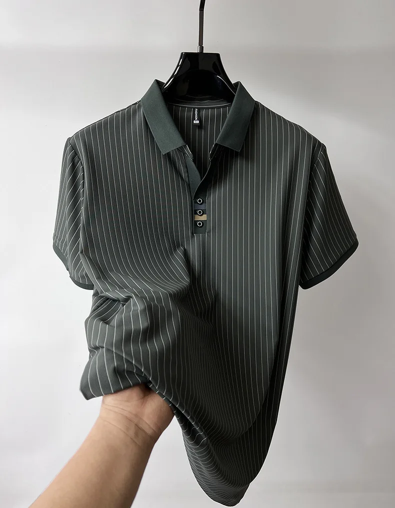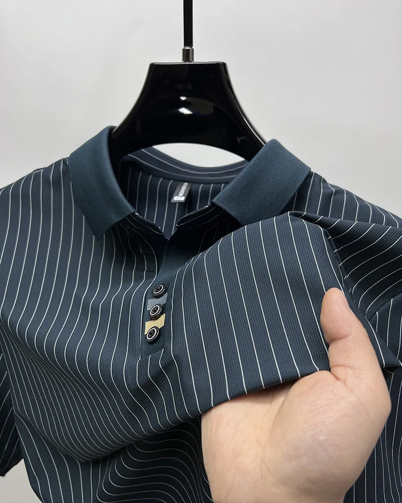 Experience the luxury of our High end brand ice silk vertical stripe short sleeve POLO shirt men summer fashion business leisure. Its high-quality fabric and impeccable design make it a standout piece in your summer collection. Embrace the blend of style and comfort with this High end brand ice silk vertical stripe short sleeve POLO shirt men summer fashion business leisure.