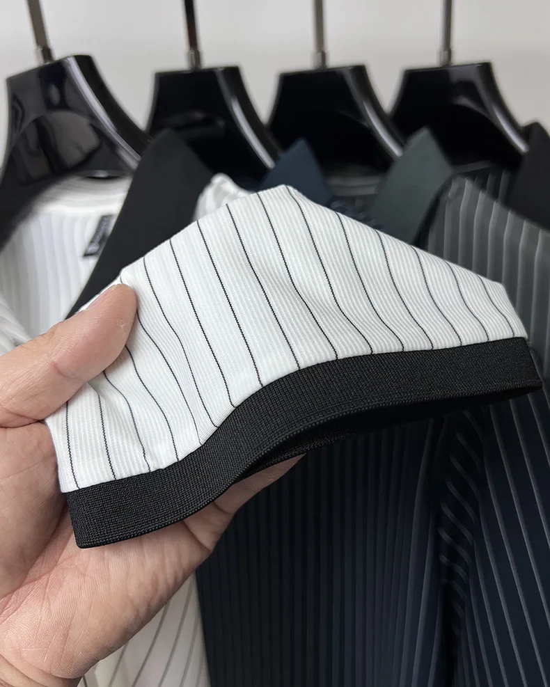Elevate your summer wardrobe with our High end brand ice silk vertical stripe short sleeve POLO shirt men summer fashion business leisure. This versatile piece blends fashion and functionality, making it a must-have for any wardrobe. Crafted from premium ice silk, this High end brand ice silk vertical stripe short sleeve POLO shirt men summer fashion business leisure ensures maximum comfort and breathability.