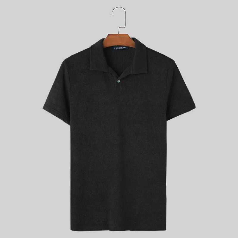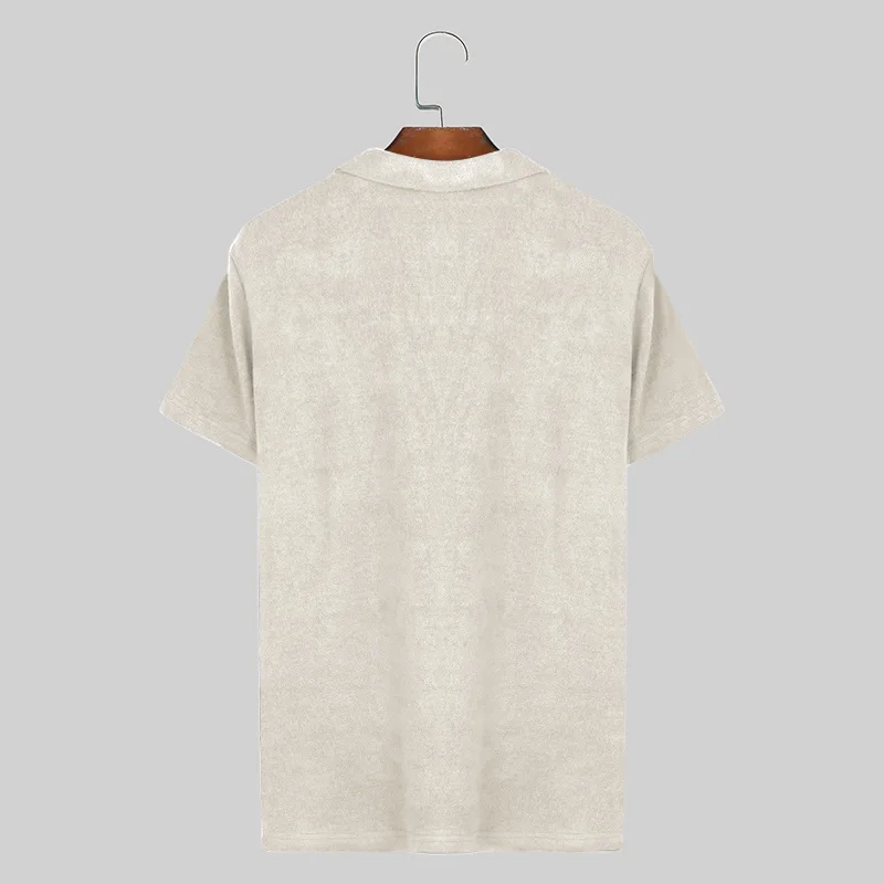 INCERUN Men T Shirts Solid Color Lapel Short Sleeve Knitted Streetwear Men Clothing Summer 2024 Fashion Casual Tee Tops S-5XL